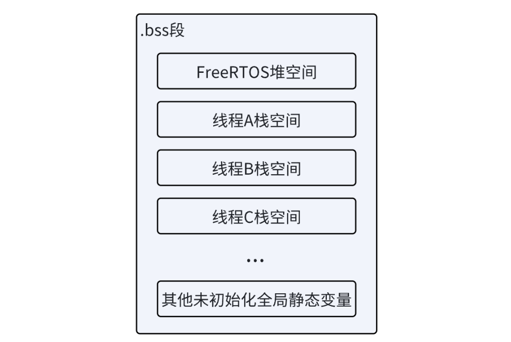 - 作用:存放未初始化的全局 / 静态变量,C 语言标准要求这些变量初始化为 0,因此不需要在 FLASH 中存储初始值(节省 FLASH 空间)。