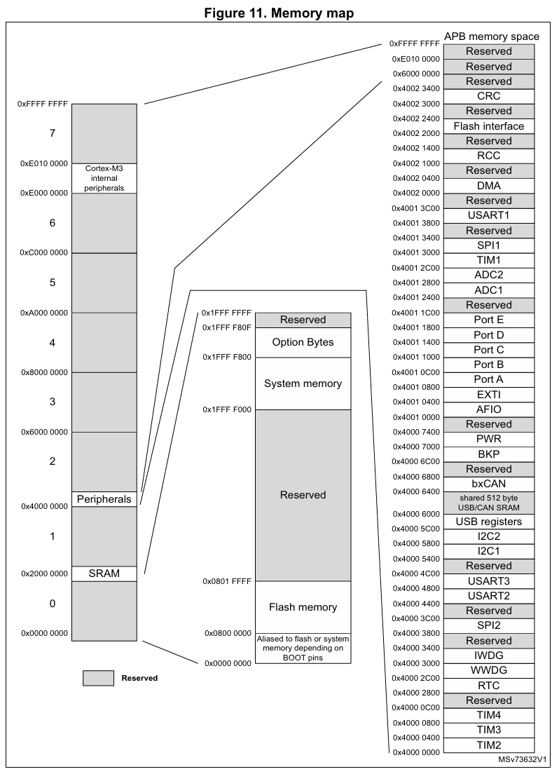 F103C8的地址映射图