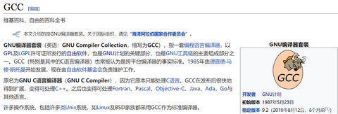 - GCC:GNU Compiler Collection(GNU编译器集合)的缩写,可以理解为一组GNU操作系统中的编译器集合,可以用于编译C、C++、Java、Go、Fortan、Pascal、Objective-C等语言