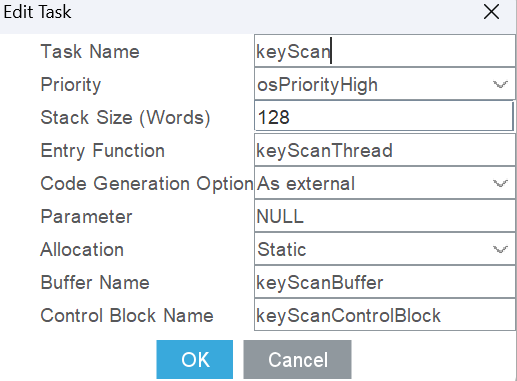 然后在cpp文件中去实现,实现的函数用extern "C"包裹即可,这样void keyScanThread(void *argument)经过C++编译器编译后的符号就可以被C链接